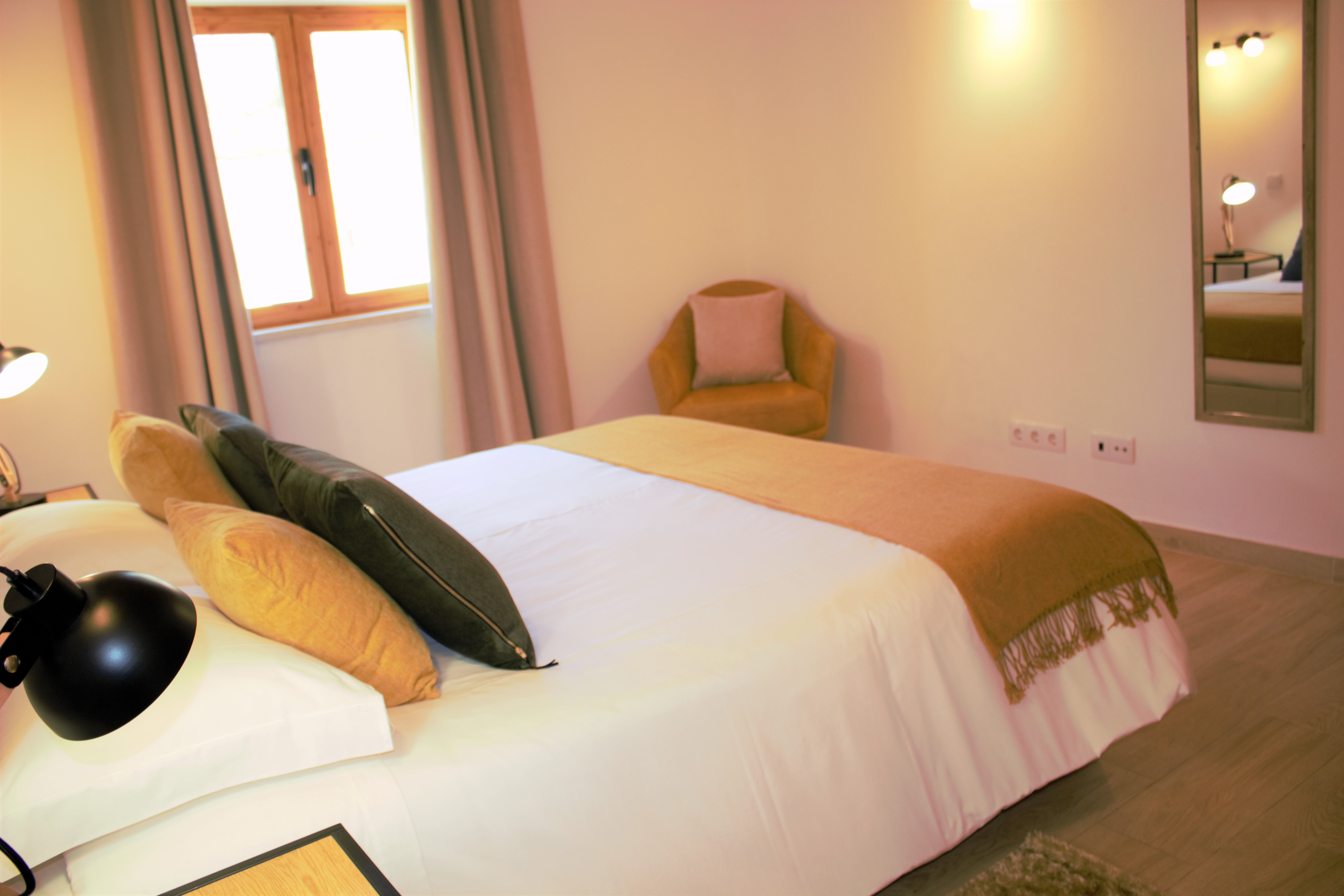 Casa da Laranjeira with 1 bedroom with double bed, 1 bathroom with spacious shower, fully equipped kitchen and spacious living room with dining table and sofa bed. Balcony with private outdoor table with countryside view. House with approximately 80 m2.